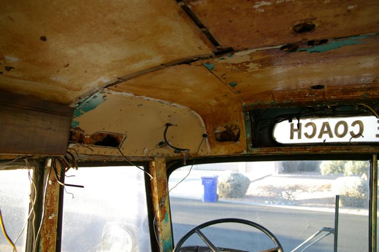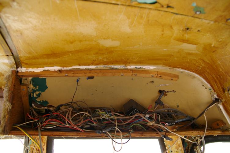 An Electrical Rats-NestSorry, not a real rat's nest, the real ones I removed from the ductwork with my trusty shop vac. Now, I expect craziness from the previous retrofits, but this one takes the cake. I pulled off the panel above the left side of the driver's area, and this is what I found. It was packed full of wire, randomly jumbled, spliced in every way possible, and impossible to determine what went where. Most of it appears to have been from an intercom system that had been removed, along with wiring for a backup camera (removed) and a CB radio (removed). After attempting to figure out what went where, I finally decided if any of it was important, it was doomed to failure anyway. So I went at it with a set of wire-cutters. Everything that had worked was still working when I drove the bus back to the lot, so apparently my theory was good. The lower picture shows both the wiring and the overhead panel have been removed. You can also see in that picture where an access hole was "improved" by enlarging it with the tried and true method of hammer and screwdriver. Repairing these panels is going to be a real joy. |